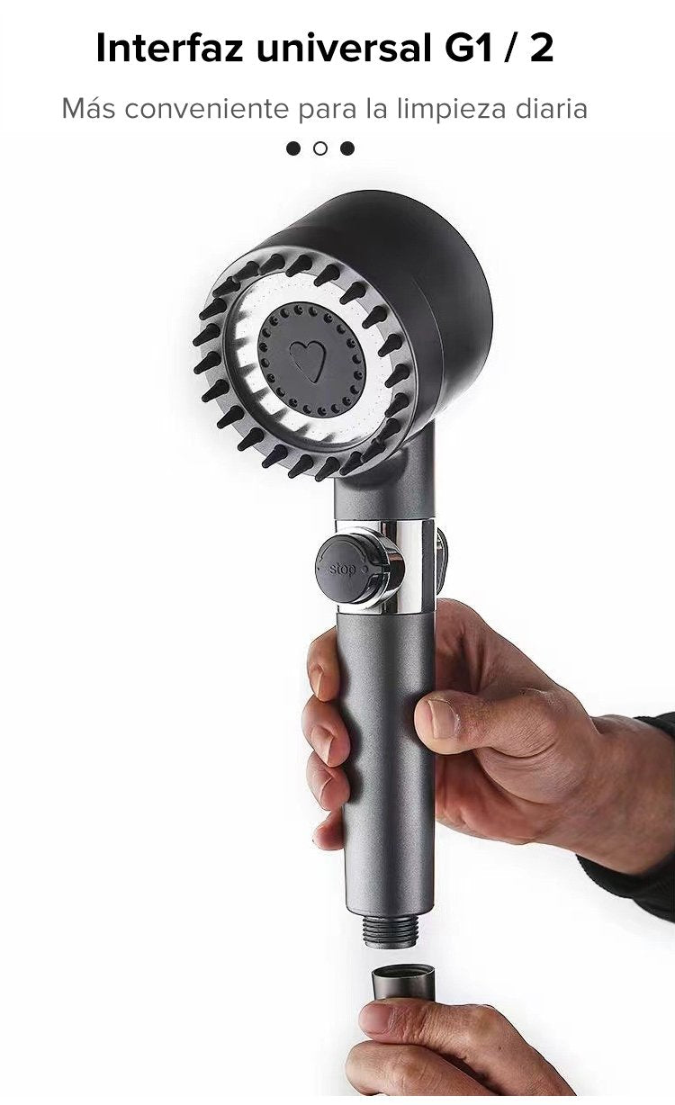 💧 Aumenta la presión de agua : Aumentándola en un 200%, proporciona una ducha más potente, que elimina las impurezas de la piel, al mismo tiempo que masajea.