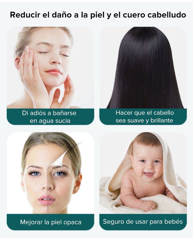 💧 Cuida y suaviza tu piel y tu cabello: Contiene minerales y un filtro de iones negativos que ayudan a reparar el cabello dañado y la piel seca desde la primera ducha, sin necesidad de caros cosméticos.
