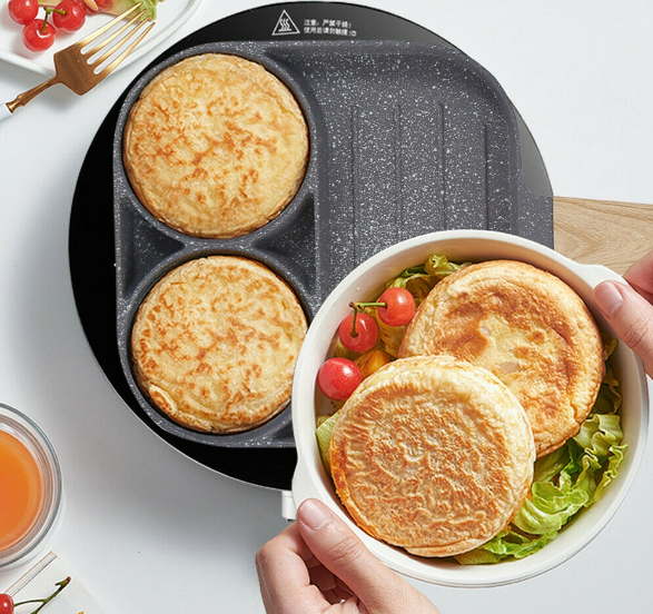 Nuestra sartén 3 en 1 también cuenta con una tapa que se puede utilizar como plancha para hacer tortillas, crepes o incluso panqueques. Con esta sartén, no solo ahorra espacio al tener tres utensilios en uno, sino que también ahorra tiempo y esfuerzo al tener la versatilidad de cocinar diferentes tipos de platos con comodidad.